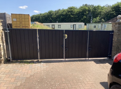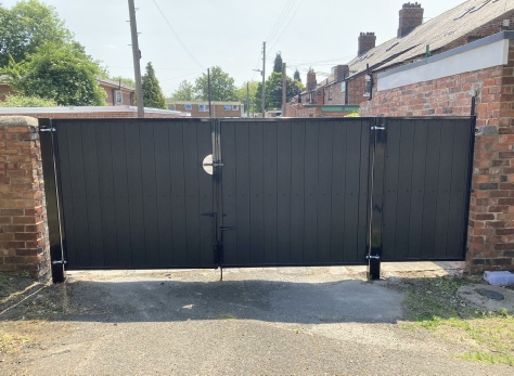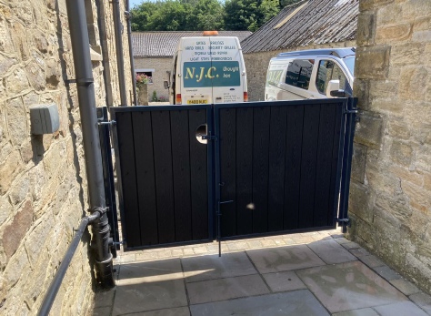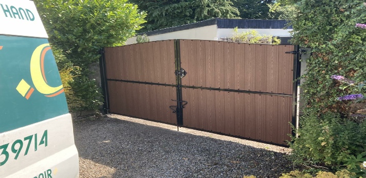 OLD ROTTEN GATES REMOVED, NEW GALVANISED FRAME COMPOSITE GATES FITTED.