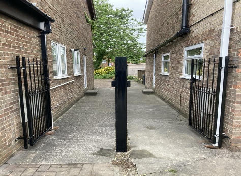 PAIR OF SIDE GATES AND CENTRE POST IN A SHARED ALLEYWAY FOR NEIGHBOURS