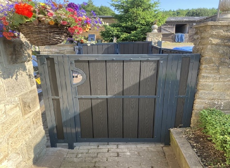 ANOTHER SET OF COMPOSITE CLAD GATES COMPLETE WITH DECORATIVE TOP & LOCK.