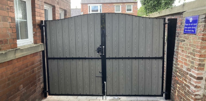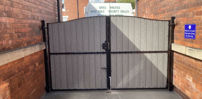 TWO SETS OF GATES FOR A LOCAL SCHOOL COMPOSITE CLAD, FRAMES ALL GALVANISED